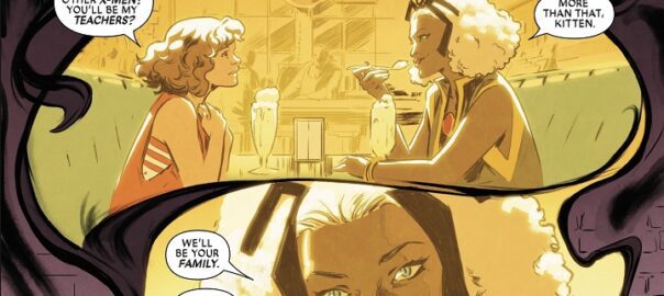 Excepcional Patrulla-X me sorprendió bastante con su primera entrega y viene ahora a confirmar esas sensaciones iniciales con un segundo número que sigue sumando personajes a la trama al tiempo que hace ver a la buena de Kitty que su retiro espiritual en Chicago ha terminado justo antes de comenzar. Con la entrada de Trista, Thao y Alex Ewing hace una de las cosas que mejor ha hecho Marvel siempre, poner el foco en una nueva generación de adolescentes con nuevas inquietudes, nuevos pasatiempos y las mismas inseguridades de siempre. Y al lado de ellos pone a dos figuras que son pura magia mutante y marvelita: por un lado la tenemos a ella, a Kitty, la eterna gran aprendiz de Logan y la eterna jovenzuela que ha ido creciendo al fuego de la Patrulla-X y que ahora ha de lidiar con la certeza de haber pasado a la mesa de los mayores y con un pasado reciente del que no está nada orgullosa al tiempo que esta nueva generación de mutantes la coloca como su punto de referencia y su campeona particular.