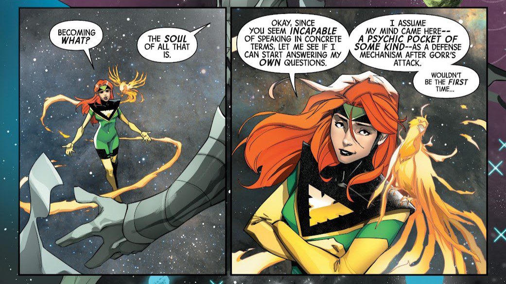 La irregular Stephanie Phillips se ha propuesto a llenar el hueco dejado por Guardianes de la Galaxia con nada menos que Jean Grey, Fénix. La caída de Krakoa supuso una nueva diáspora para la raza mutante, que ha buscado refugio en lugares como Alaska, Nueva Orleans… o los confines de la galaxia.
