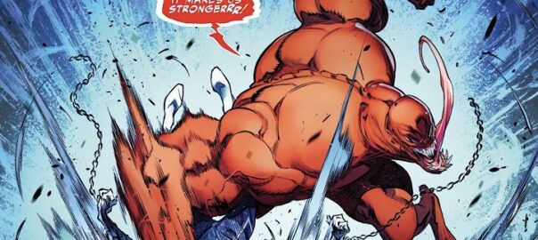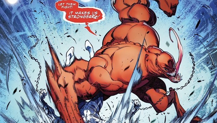 No tengo palabras para calificar lo que está siendo el final de fiesta de Al Ewing al frente de la colección de Veneno. Lo que empezara como una revisión de lo mecanismos que hacían funcionar al personaje al tiempo que se obligaba a crecer y a madurar a la siguiente generación simbiótica se ha terminado convirtiendo en una ensalada en la que cada ingrediente busca estar por encima de los demás y en la que no terminamos de saborear nada de nada. Hay muchos simbiontes pegándose en un cuadrilátero (y la mitad de ellos son Eddie Brock) , mientras tanto, Meridius (otro Brock más) y Matanza se dedican a cargarse la ciudad sin que nadie parezca mover un dedo (supongo que para eso están los spin-off).