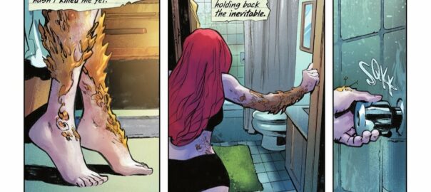 Esta es una Hiedra que viene de sufrir un profundo trauma y el viaje que aquí inicia no se entiende sin el peso de sus decisiones (y acciones) recientes. ¿Contexto? Su papel fundamental en la saga Estado de Miedo… que deriva de su trágico papel en Héroes en crisis. En aquella saga falleció y fue resucitada, con el efecto colateral de ver su mente y cuerpo fragmentados en dos: la Pamela humana y un duplicado vegetal. Eventualmente, en Estado de Miedo ambas hiedras entran en conflicto, con la réplica vegetal llevando al extremo su lucha eco-terrorista. Por mediación de Harley ambas Hiedras se fusionan, pero por el camino (como nos explica Willow Wilson), los poderes inherentes al verde que tenía la Pamela vegetal han desaparecido. Y es ese sentimiento de pérdida lo que impulsa al personaje en este nuevo arranque.