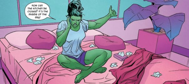 Si algo nos ha quedado claro después de disfrutar del quinto -y último- volumen de la Hulka de Rainbow Rowell es que el formato importa -mucho- y que esta serie ganará enteros en una futura edición integral. Parte de la experiencia de las publicaciones seriadas radica en las expectativas y especulaciones que surgen en el lapso de tiempo entre número y número. Pasa con los productos televisivos y pasa con los cómics. Los bajones de ritmo o la aparente falta de rumbo penalizan mucho más. Pero también se potencian más las escenas y momentos impactantes, generando conversación e interés de cara al siguiente capítulo.