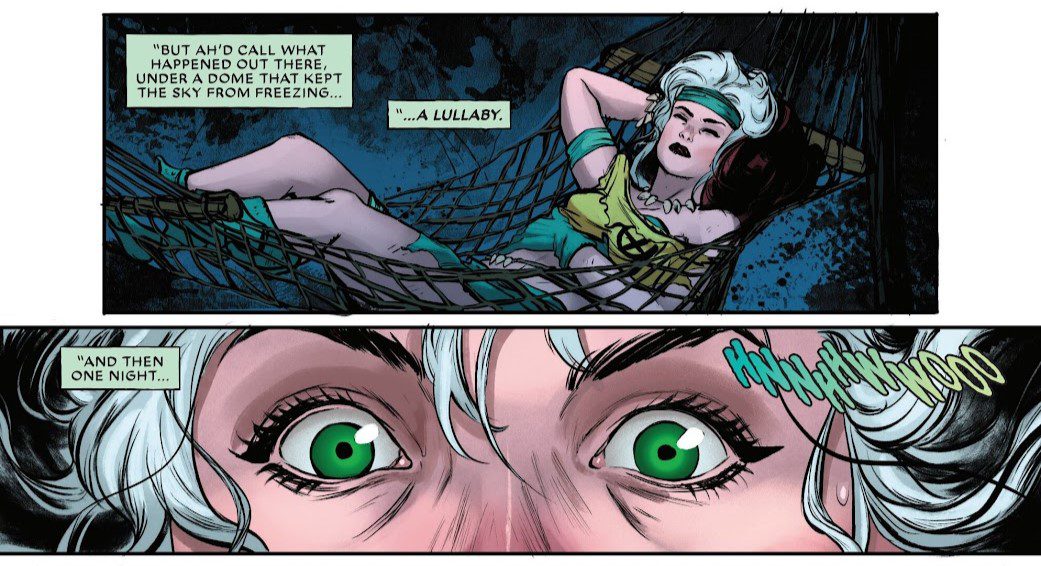 Esta miniserie nos retrotrae a la Patrulla-X de principios de los 90, a un momento en el que Pícara, huyendo de Los Cosechadores acaba perdida en la Tierra Salvaje. Si conocéis la etapa, estáis de enhorabuena, en seguida podréis sumergiros en este cómic de Tim Seeley Zulema Lavina y Von Randal. ¿No es el caso? Pues bucead por foros y las wikis de turno si queréis situaros, porque los textos que acompañan a la aventura (tanto el spot-on como la mini-introducción de la cubierta interior) despejan muy pocas dudas.