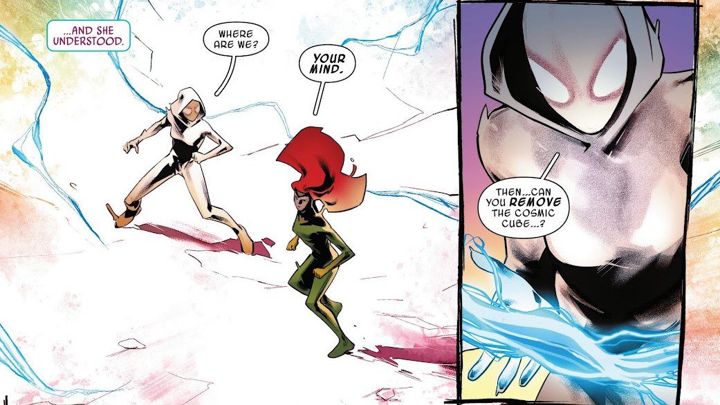 Sea como fuere, lo cierto es que en este quinto cuaderno Phillips cierra el arco espacial de Gwen. Y lo hace de la manera más cómoda posible: con magia. La participación de Jean Grey ha resultado ser bastante anecdótica y ha ejercido más como guía que como aliada. A nadie se le escapa (a la guionista la primera) que la nueva súper Fénix podría haber resuelto este entuerto con solo desearlo, pero ha decidido erigirse como una suerte de Yoda, dejando que sea Gwen quien libre su batalla estuviera o no preparada. Al final no ha sido más que un capricho propio de un fanfic, pero que al menos le ha dado la oportunidad a nuestra protagonista de aprender a canalizar los poderes que le ha otorgado el cubo cósmico. Qué hace con ellos es otra cuestión que si All New Spider-Gwen llega de manera oficial a España, ya abordaremos.