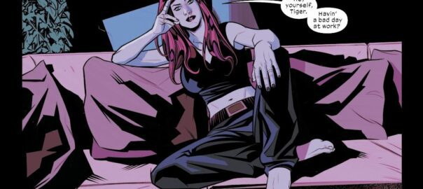 Precisamente sobre el temor es sobre lo que versa la otra conversación, la que tiene lugar entre MJ y Peter. «¿… prometes avisarme si tuviera que asustarme?» La pareja discute acerca de los peligros del vigilantismo y de cómo este afecta a la que hasta hace solo unos meses (once para ser exactos) era una vida matrimonial sin más sobresaltos que las trastadas que pudieran hacer sus hijos. Ser Spiderman es algo que afecta a la familia, hay una responsabilidad hacia ella que no puede ser dejada de lado y este es el tema sobre el que debaten Mary Jane y Peter. Y lo hacen desde una posición que el guionista ha ido remarcando desde el arranque de la serie: el enorme peso de MJ en las dinámicas familiares. Ella es el muro portante de la familia, quien sustenta la estructura y quien, en última instancia, ejerce de líder. Peter es Spiderman porque cuenta con el apoyo y la aprobación de Mary Jane.